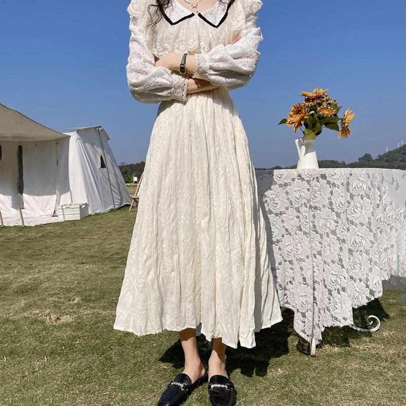 女性らしさを引き立てるロングスカートが登場!透け感のある素材とフリルデザインが、上品で可愛らしい印象を与えます。韓国風のスタイリッシュなデザインで、おしゃれな雰囲気を演出できます。あなたのコーディネートにアクセントを加える一枚です。