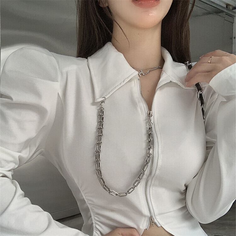 クリエイティブなスタイリングを叶える、ハイウエストのTシャツです。シンプルながらも独創的なデザインが特徴で、短い丈がトレンド感を演出します。ワイドパンツやスカートとの相性も抜群で、スタイリングの幅を広げることができます。