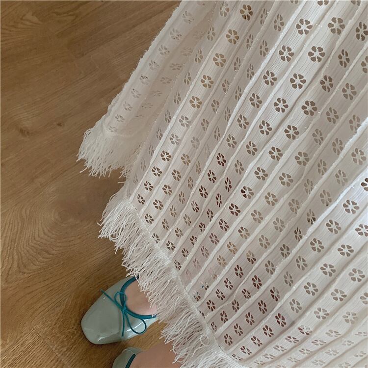 レーススカート ロング丈スカート フリンジ レディース ハイウエスト おしゃれ