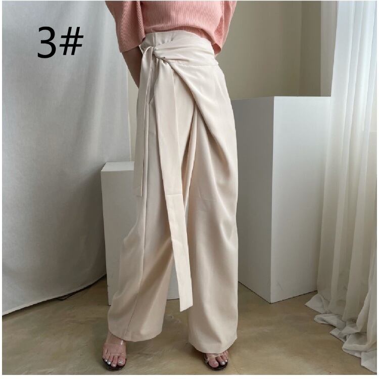 ロング丈ズボン ロングパンツ ワイドパンツ ハイウエスト レディース 着痩せ リボン付き