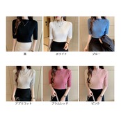 レディース セーター ニット プルオーバー ハイネック ニットソー 五分袖 ハイネック