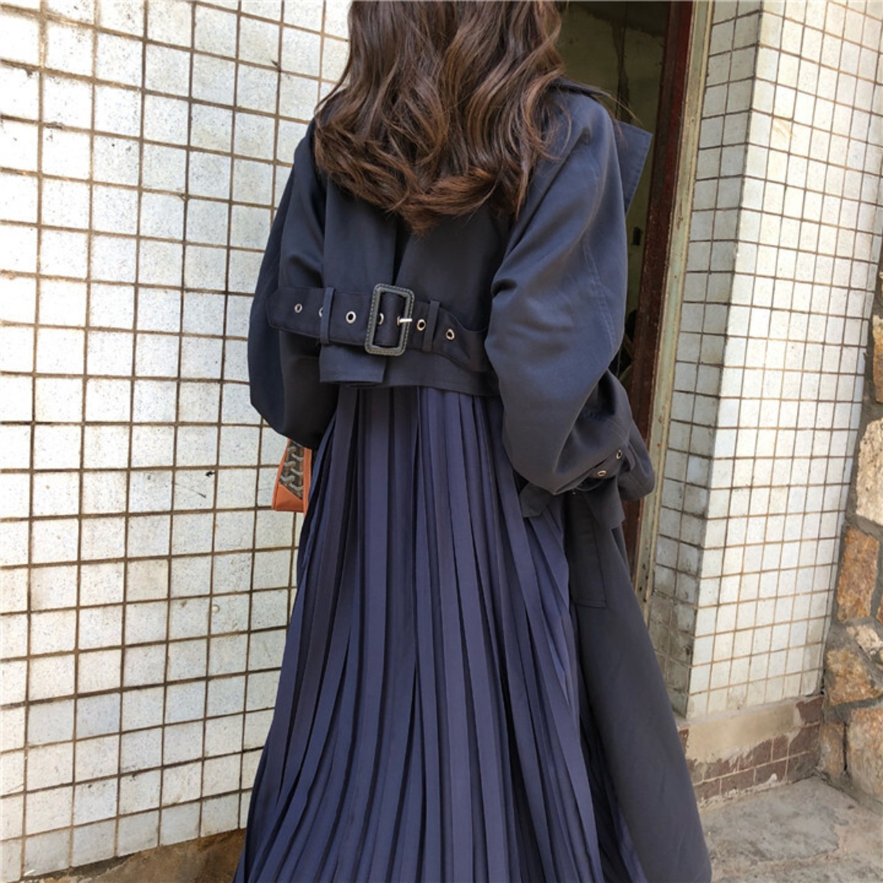 トレンチコート ロング丈コート バックプリーツ アウター レディース