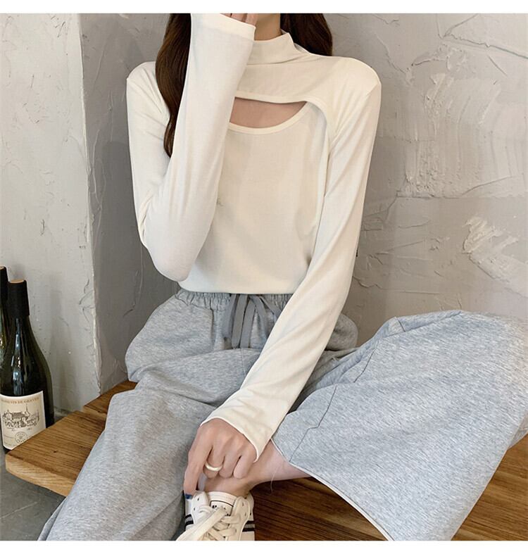 透かし彫り タートルネック ニットトップス 長袖 トップス レディース Tシャツ スリム