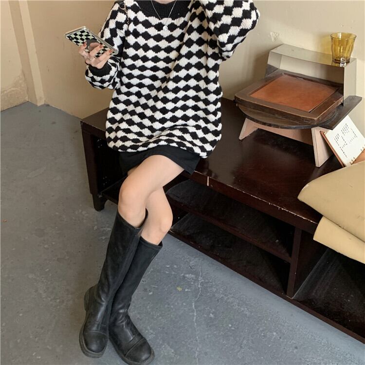 ニットトップス カジュアル セーター レディース ゆったりする 怠惰な風 ひし形