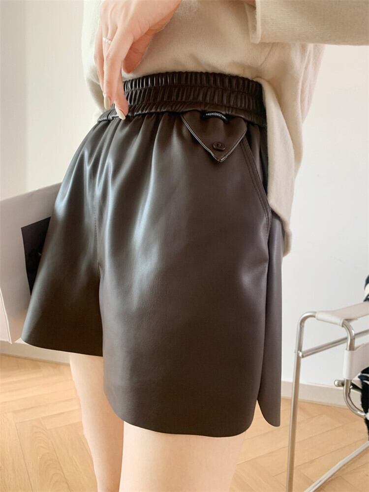 レザー 簡約 Aライン カジュアルパンツ レディース ハイウエスト