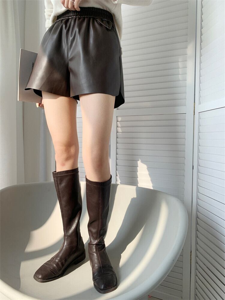 高品質なレザーを使用した簡約なデザインのAラインカジュアルパンツです。しっかりとしたハイウエストで脚長効果も抜群。カジュアルながらも上品さを演出します。シンプルなデザインなので、どんなトップスとも相性抜群。オフィスカジュアルやデートシーンにもぴったりです。
