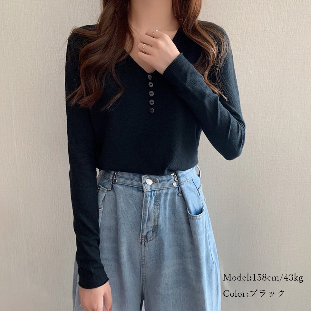 切りっぱなし ニットセーター カジュアル 長袖 ニットソー ボタン飾り 着やせニット きれいめ 秋冬 無地