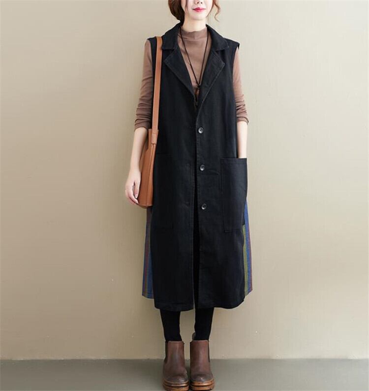 デニム ベスト レディース ゆったりする 大きいサイズ ニーハイ ロング 袖なし コート