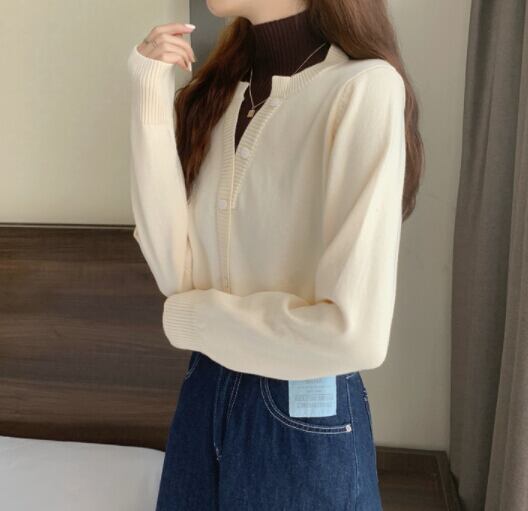 レディース トップス ニット ハイネック セーター 重ね着風