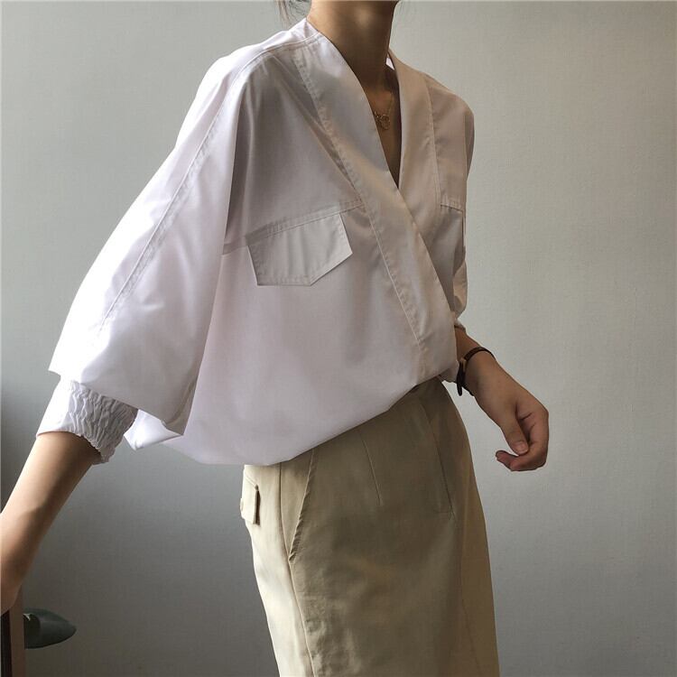 ゆったりする ブラック イレギュラー デザインセンス シャツ レディース カジュアル ピュアカラー