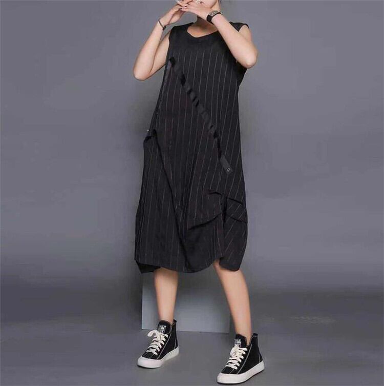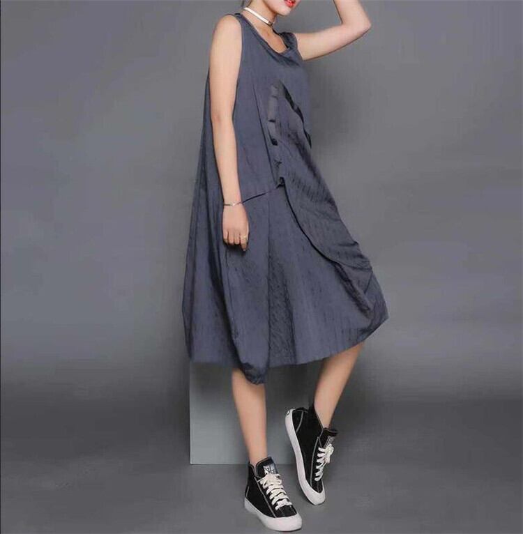 大きいサイズ レディース ピュアカラー ワンピース カジュアル ストリート 袖なし
