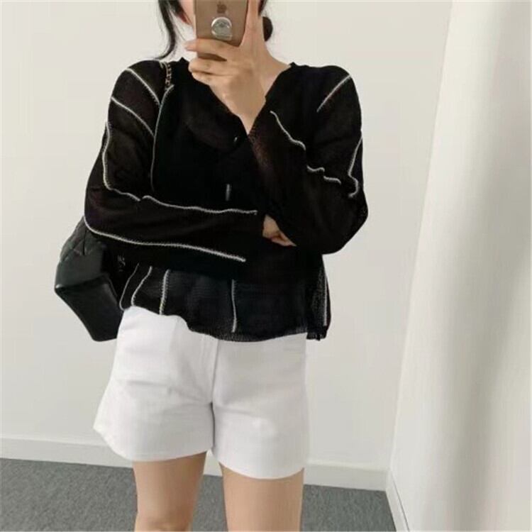レディース カジュアル 韓国風 レトロ Vネック ニットトップス トップス 長袖