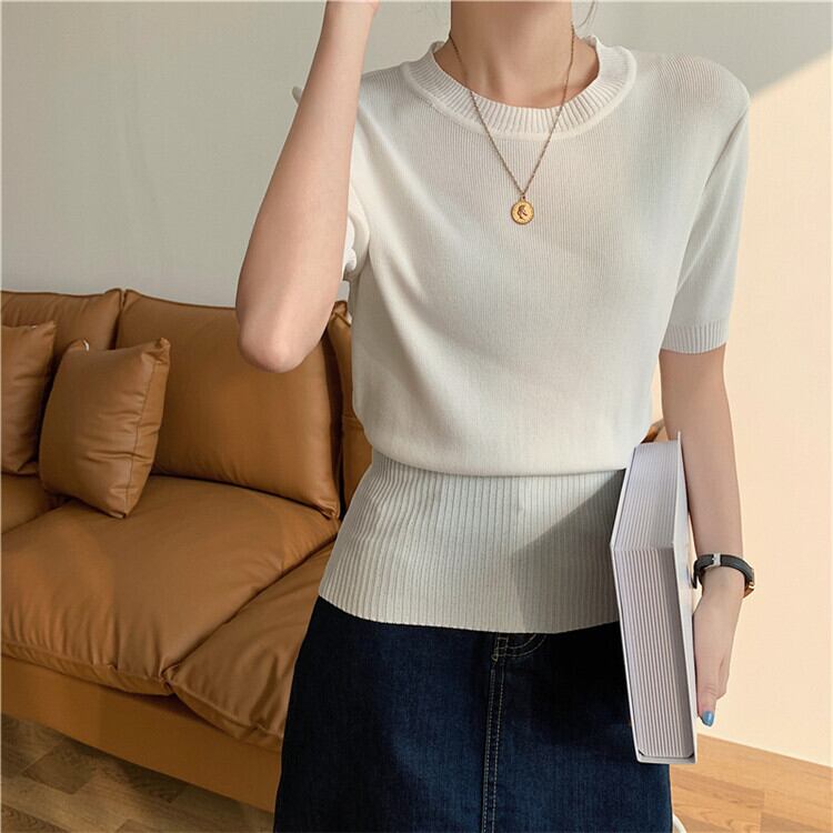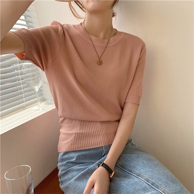 ファッション Tシャツ トップス レディース 春夏 韓国 快適である 通気性 ピュアカラー ラウンドネック