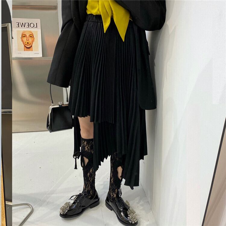中・長セクション ハイウエスト プリーツスカート レディース 気質