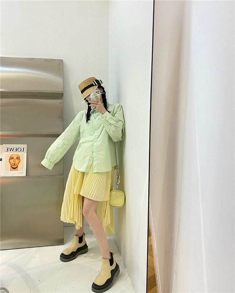 品の中・長セクションのハイウエストプリーツスカートは、おしゃれな女性にピッタリの一枚です。シンプルなデザインながらも、プリーツの繊細なディテールが上品さを引き立てます。ハイウエストデザインなので、脚長効果も期待できますよ。どんなトップスとも相性抜群で、オフィスやデートにもぴったり。着ているだけで女性らしさと気質をアピールできます。