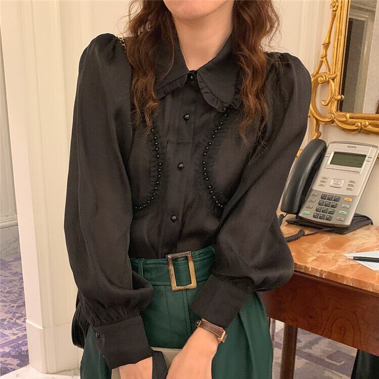 人形の襟 トップス レトロ ファッション レディース 長袖 シャツ 大人気 気質