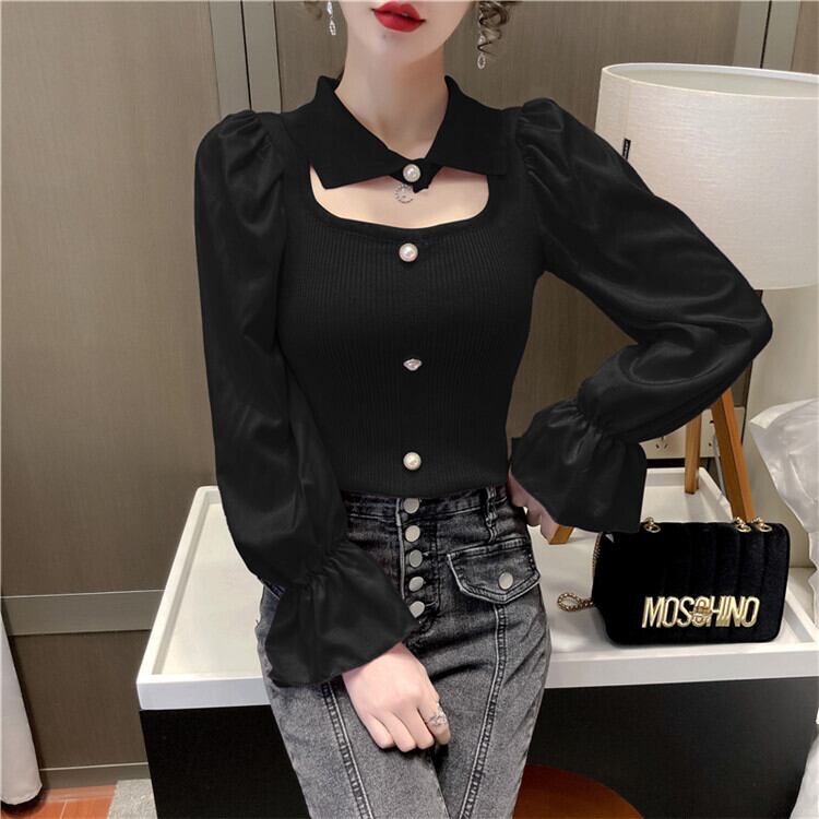 長袖 トップス デザインセンス 百掛け パフスリーブ sweet系 セーター レディース