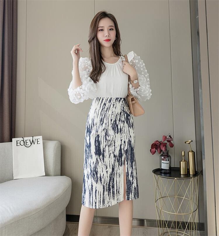 中・長セクション スリムフィット プリント スカート 気質 ヒップスカート レディース