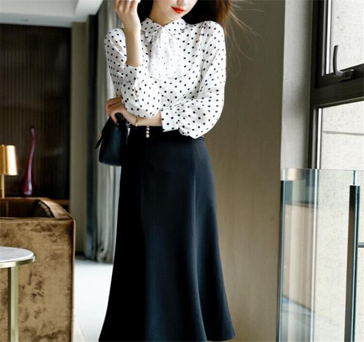 INSスタイル 気質 ドットシフォン 職場 インナー トップス 蝶結び シャツ レディース