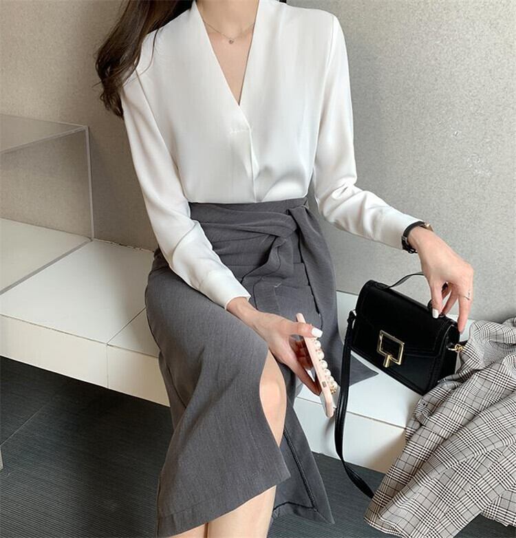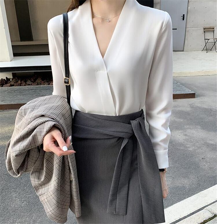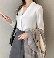 Vネック 長袖 気質 スリム レディース シフォン シャツ 春 トップス