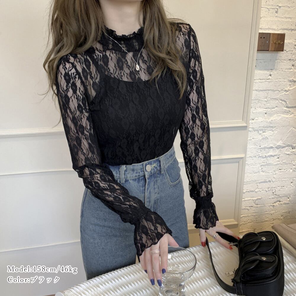 レース ブラウス レディース フリル シースルー トップス 花柄 プチハイネック きれいめ おしゃれ