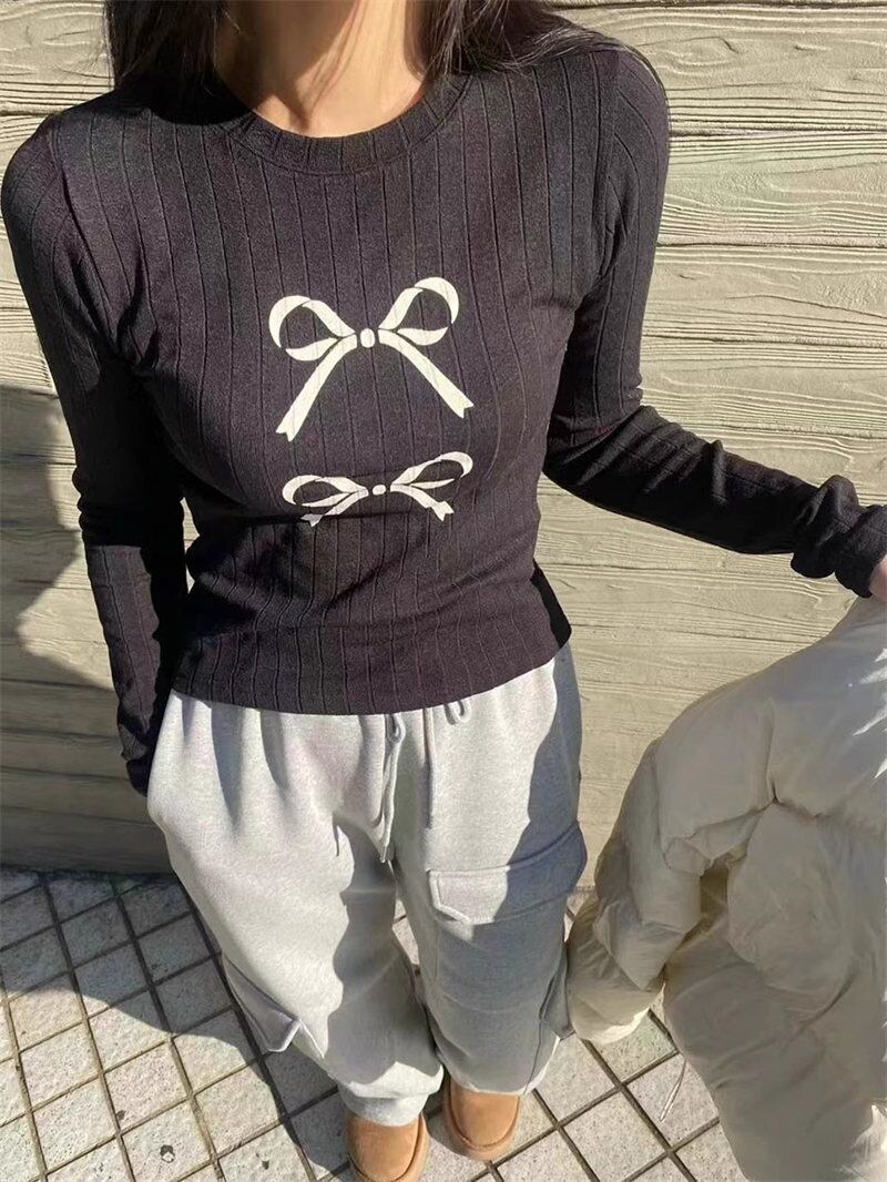 気質 レトロ おしゃれ カジュアル ニット Tシャツ