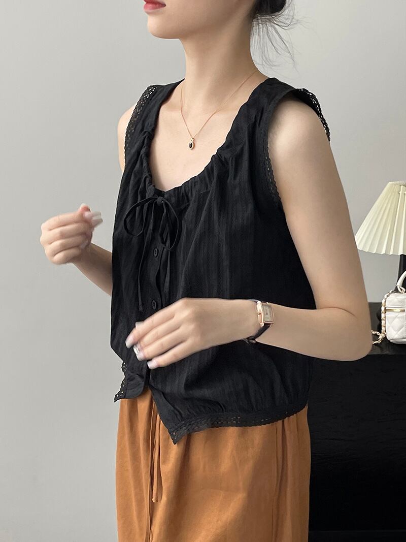 22079 2023夏新作 レディース ベスト トップス ノースリーブ 上着 レース フランススタイル 練習服