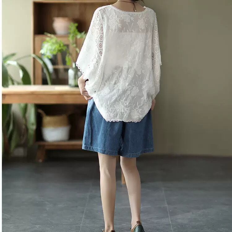 u19647 6色 レディース 夏新作 ラウンドネック エレガンス トップス 薄い軽い 刺繍 半袖
