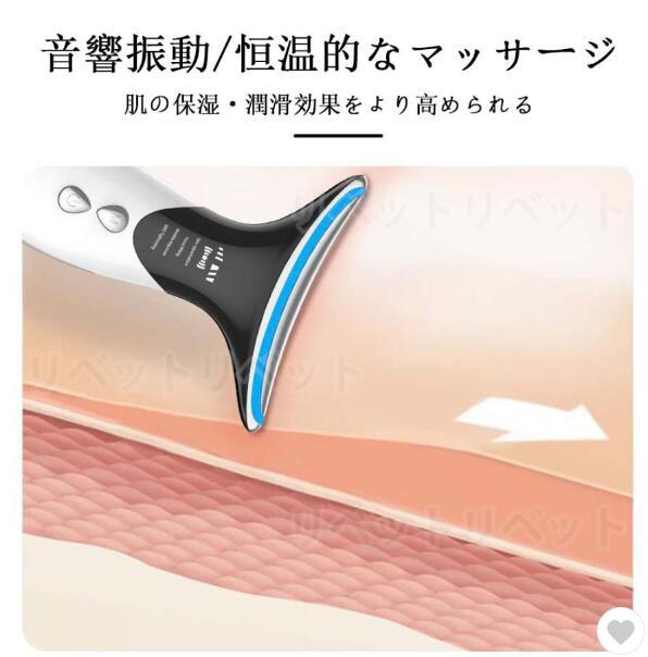 首美顔器 EMS超音波美顔器 リフトアップ LED 美容家電 ネックケア 温熱モード USB充電式 EMS微電流