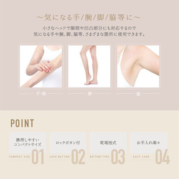 手や腕、脚、脇等気になる箇所に使えるコンパクトサイズの脱毛器