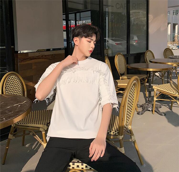 韓国ファッション 新品 美容師 タッセル 半袖 Tシャツ メンズ 夏 デザインスタイル