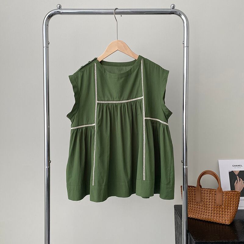 22080 レディース 無地 ブラウス シャツ トップス 上着 ラウンドネック ノースリーブ 練習服