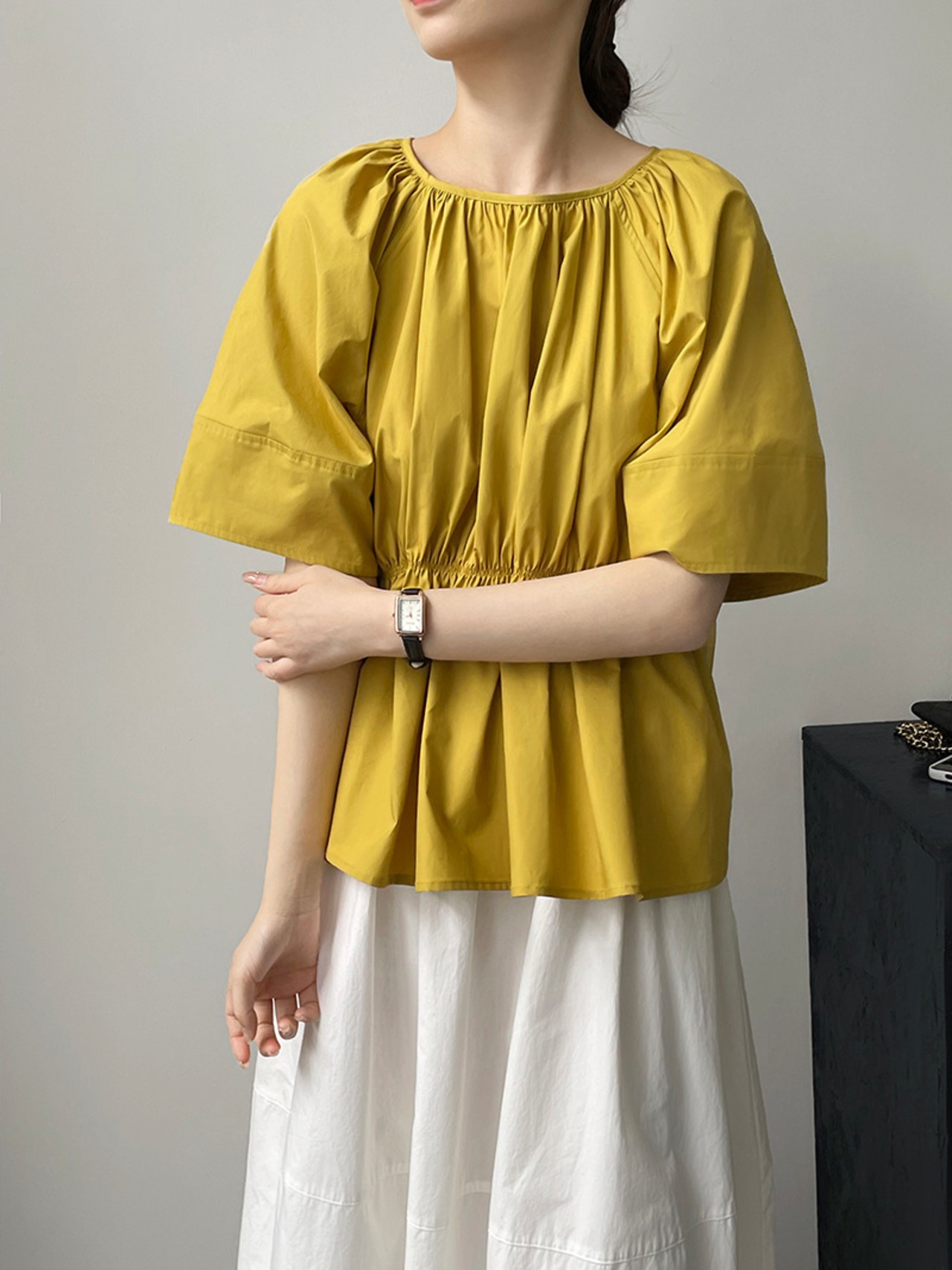 22077 レディース ブラウス シャツ トップス 上着 ラウンドネック 五分袖 練習服