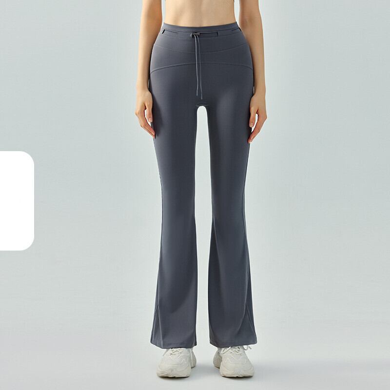 裸感マイクロラヨーガズボンハイウエストヒップフィットネスパンツ豚の鼻ボタンを調節することができ、気まずいラインのラッパズボン
