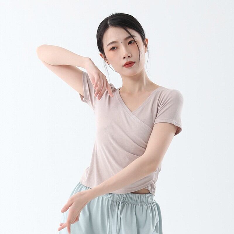 D00067 ダンス dance 女 yoga 練習服シャツ 半袖 ヨガ Vネック フォームトレーニング