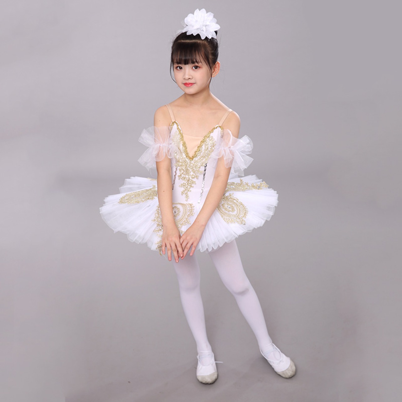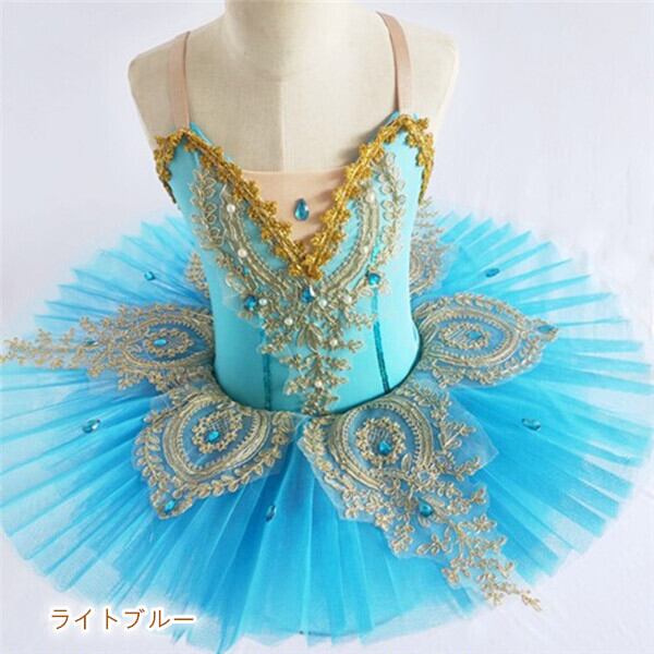 D00047白鳥がダンススカートバレエレースのポンポンスカート新型サスペンダーVネック子供