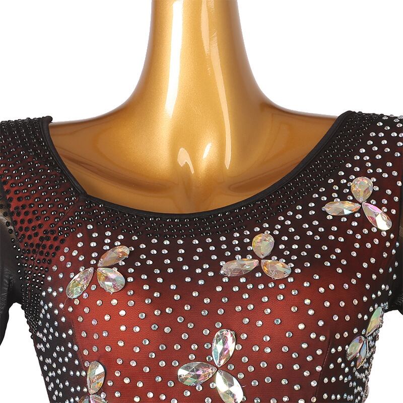 モダンダンスや社交ダンスの公演着に最適なD00156 ダンスdanceのワンピース。優雅なワルツのステージで輝くために生まれたアイテムです。立っているだけでも美しく見えるようにデザインされ、身体のラインを美しく引き立てるシルエットが特徴です。ストレッチ性の高い生地を使用しているため、動きやすさも抜群です。