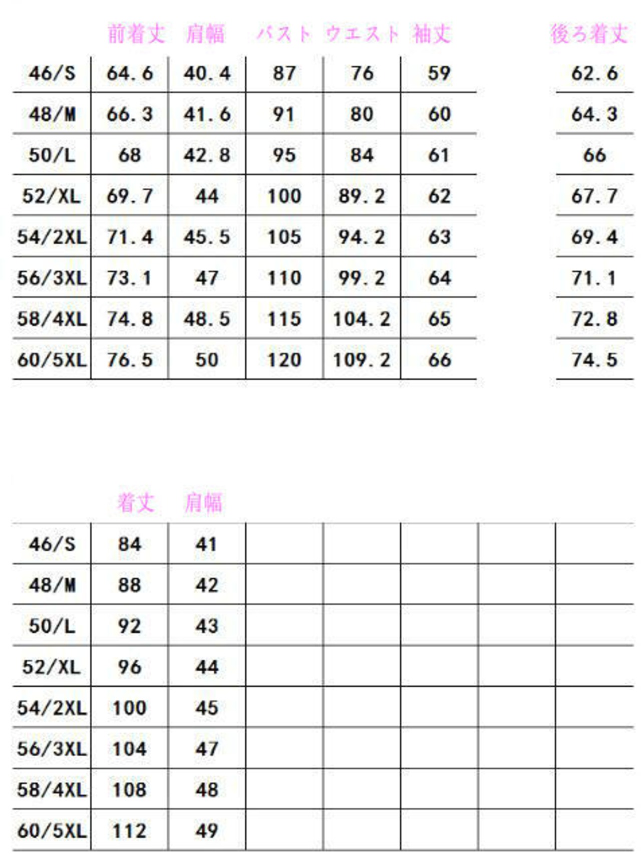 L お勧め体重130-160、着丈90、 ウエスト68、