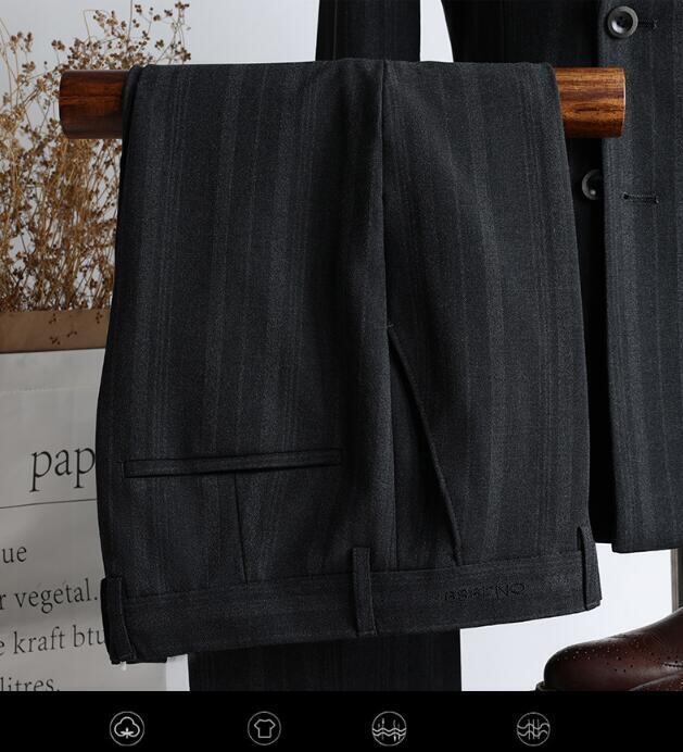 職人技術による縫製で、丁寧に仕上げられたこのスーツは、品質にこだわりを持つ方々に選ばれています。着るだけで自信を持てるスタイリッシュな印象を与えること間違いなし。コーディネートに迷った時も、一枚で決まるこのスーツセットがあれば安心です。
