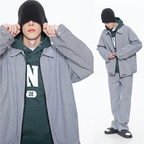 P15994 メンズ パーカー パンツ 2点セットアップ スーツ 長袖 ズボン ストライプは、オシャレにこだわる男性に最適なアイテムです。上下セットで手軽にコーディネートが完成し、ストライプ柄がスタイリッシュな印象を与えます。長袖のパーカーは、肌寒い日やオフィスでの着用にも最適。ズボンはシンプルなデザインで様々なトップスと合わせやすく、1着で様々なシーンで活躍します。