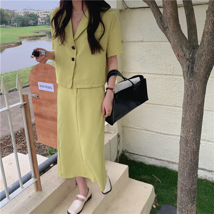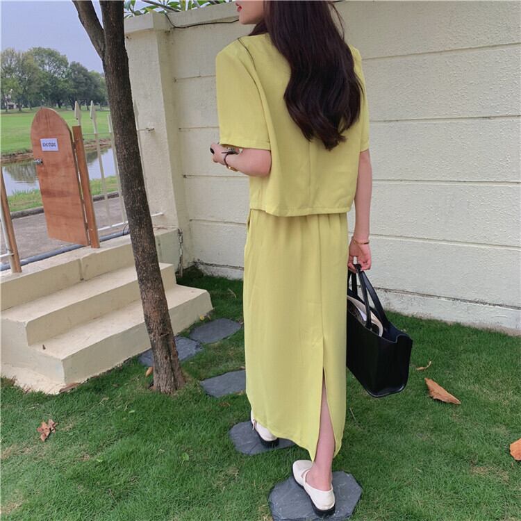 エレガント おしゃれな 大人気 半袖 スーツ トップス 百掛け ハイウエスト スプリット