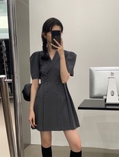 カジュアルでもビジネスでも使える万能なスーツワンピースが新登場!くだけたデザインとしっかり感を兼ね備えた、着るだけでこなれ感が漂う逸品です。キャップスリーブのハーフ袖、フレアスカートのミニ丈が女性らしさを引き立て、腰回りのシルエットが美しく見せてくれます。