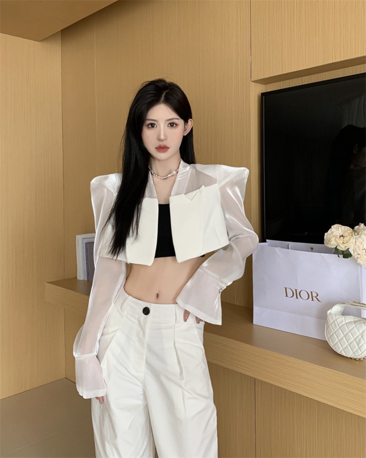 大人の魅力高まる 短いスタイル ショルダーパッド スーツ 薄手 シースルー 日焼け止め ショートコート