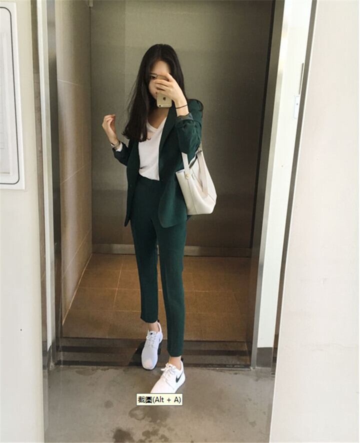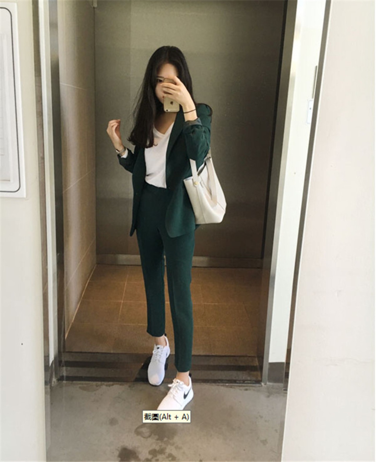 職場でも大活躍のシンプルでエレガントな韓国ファッションのスーツセット。長袖のジャケットとスリムフィットのパンツがセットになっているので、一気におしゃれ度アップ間違いなし!