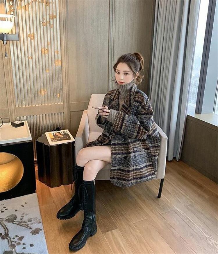 品質自信あり ゆったりする スーツ 格子縞 スリム ツイード 中長セクション ツイードコート スリム