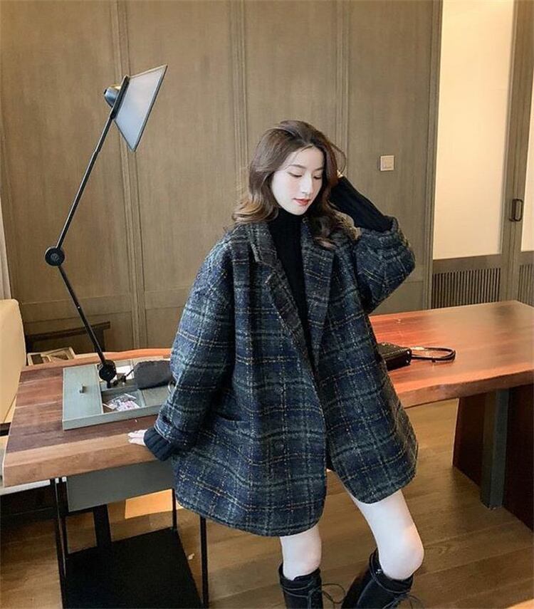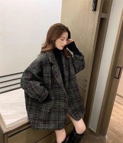 ゆったりする スーツ 格子縞 スリム ツイード 中長セクション ツイードコート スリム