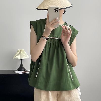 ## 22080 レディース 夏 無地 ブラウス シャツ トップス 上着 ラウンドネック ノースリーブ 練習服