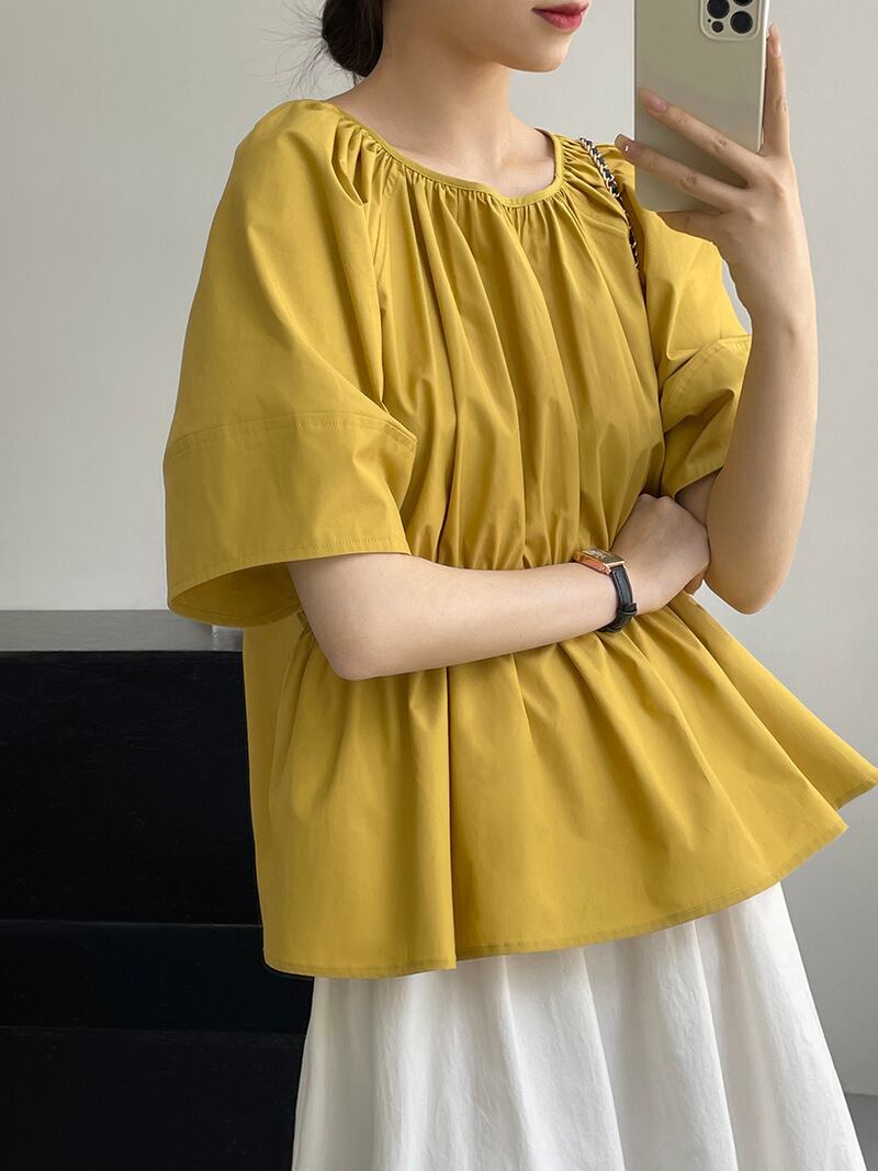 ## 22077 レディース 夏 ブラウス シャツ トップス 上着 ラウンドネック 五分袖 練習服